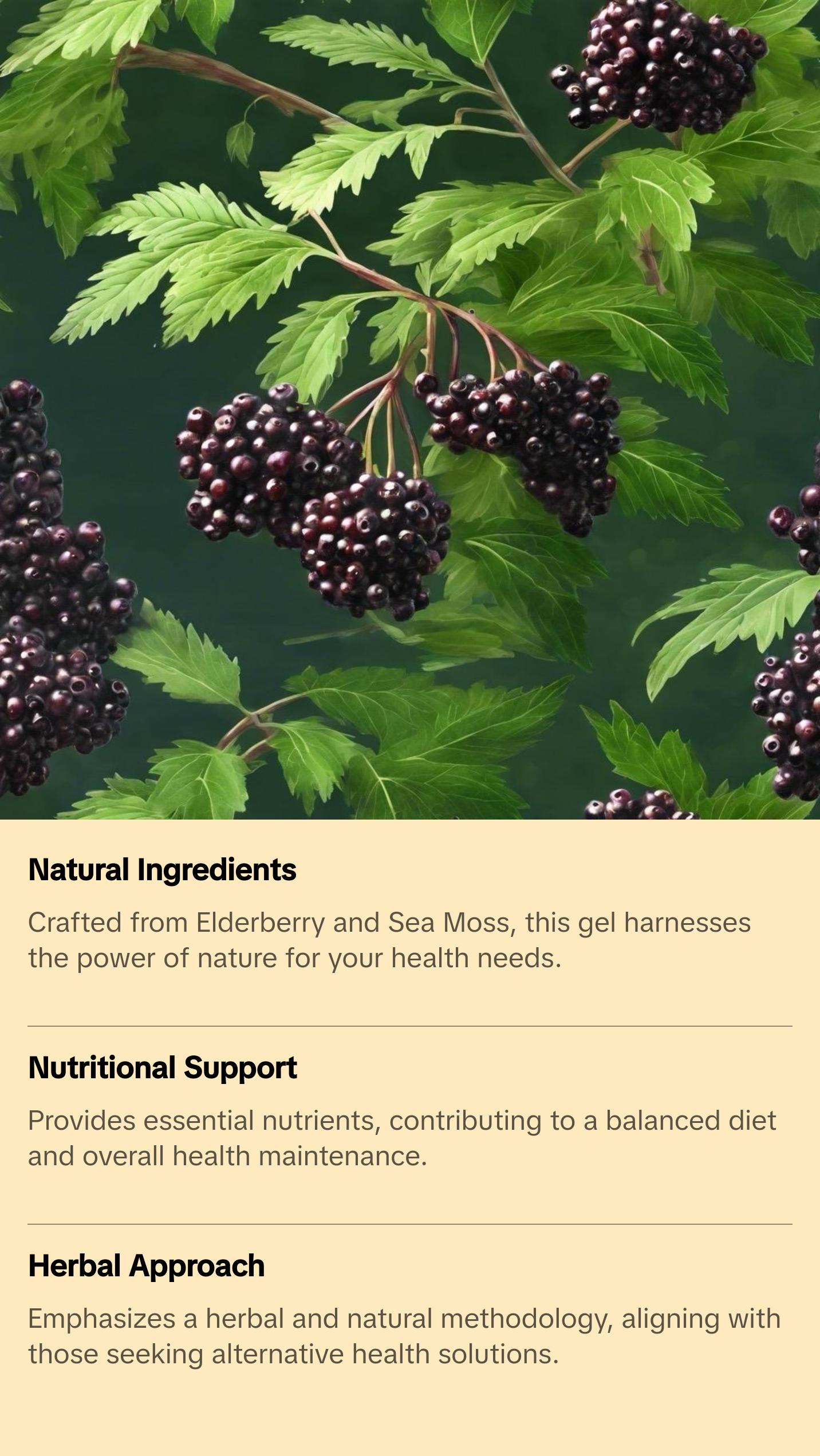 Discover the natural and herbal benefits of Elderberry Sea Moss Gel, a