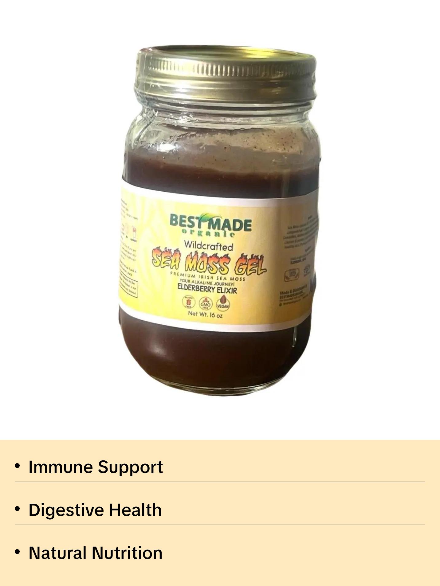 Best Made Wildcrafted Elderberry Sea Moss Gel with agave Natural and Herbal Nutrition 16 oz